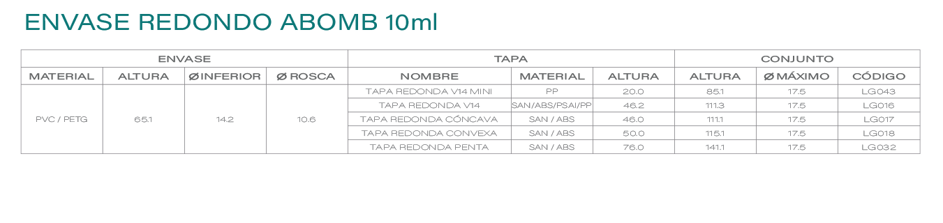 Envase redondo abombado 10ml con cinco opciones de tapa