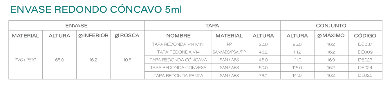 Envase redondo cóncavo 5ml con cinco opciones de tapa
