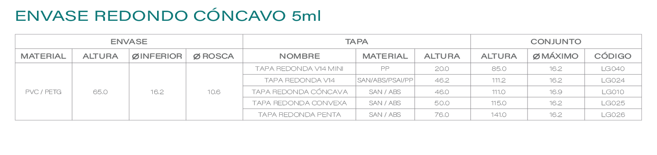 Envase redondo cóncavo 5ml con cinco opciones de tapa