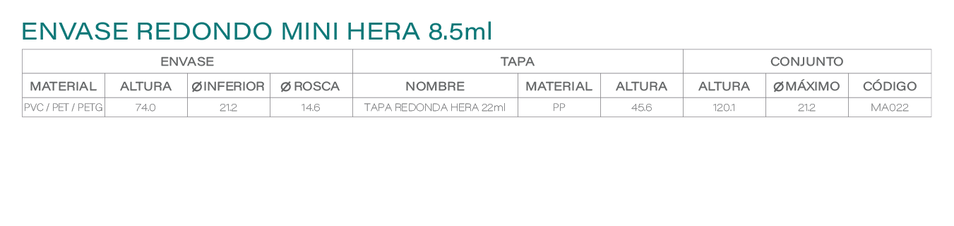 Envase redondo 8,5ml mini Hera con tapa redonda Hera