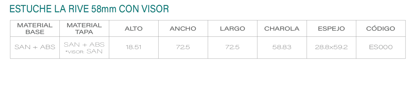 Estuche para charola de 58mm de doble compartimiento con visor y espejo media luna