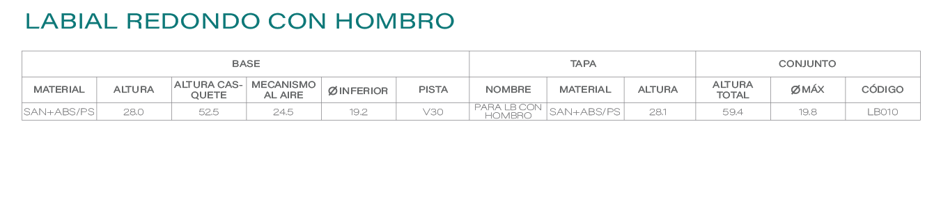Base redonda con hombro con mecanismo de 12,7mm y tapa redonda