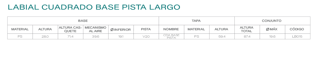 Labial Cuadrado Base Pista Largo