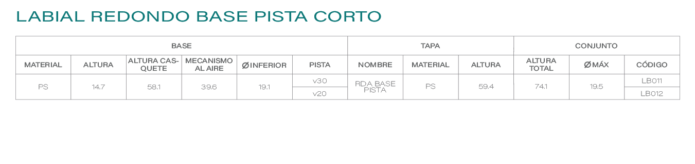 Base pista redonda corta con mecanismo de 12,7mm y tapa redonda base pista