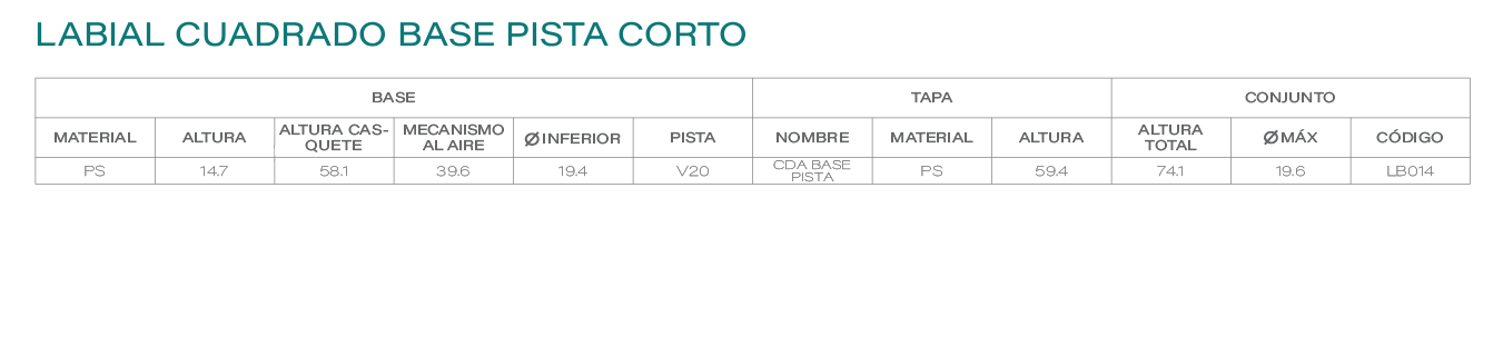 Base pista cuadrada corta con mecanismo de 12,7mm y tapa cuadrada base pista