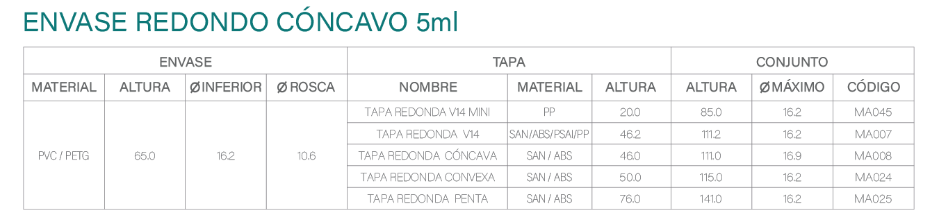 Envase redondo cóncavo 5ml con cinco opciones de tapa